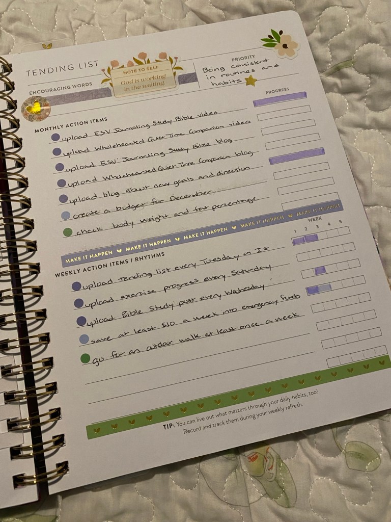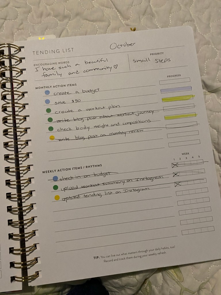 And I’ve been using the Fresh Start Weekly Goal Planner for this last quarter and it has been great! It has helped me to find what truly matters to me and to stay focused on those things. The core of the PowerSheets planners is the Tending List. I love having my goals and steps for the whole month on one dashboard.