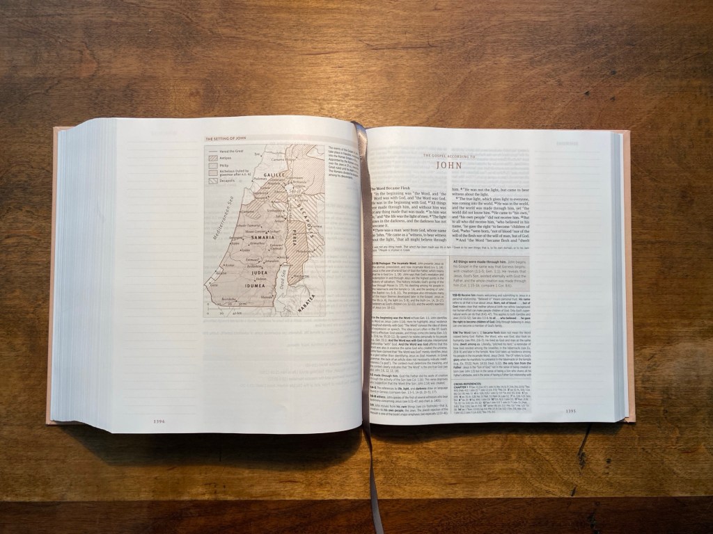 As a part of my new focus into theology, I wanted to have a Bible to serve as daily driver to take notes in. I also wanted to have some study notes to have on hand without having to take out my larger full version study Bible. So I looked into getting the ESV Journaling Study Bible from Crossway. I actually have one already that I purchased at the end of 2023 to go along with a year-long Bible study that I had planned on completing. I started that study and took notes in that Bible but quit a couple of months in and I wanted to “start fresh” so I decided to save that Bible to go along with that study and to use for other specific Bible studies in the future.